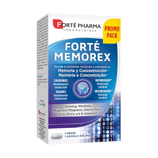 Forte Memorex es un complemento alimenticio multivitamínico que favorece el rendimiento mental, y estimula la memoria y la concentración cuando más se necesita, como en épocas de exámenes o periodos de intensidad cerebral